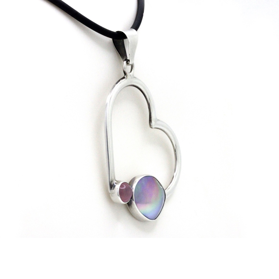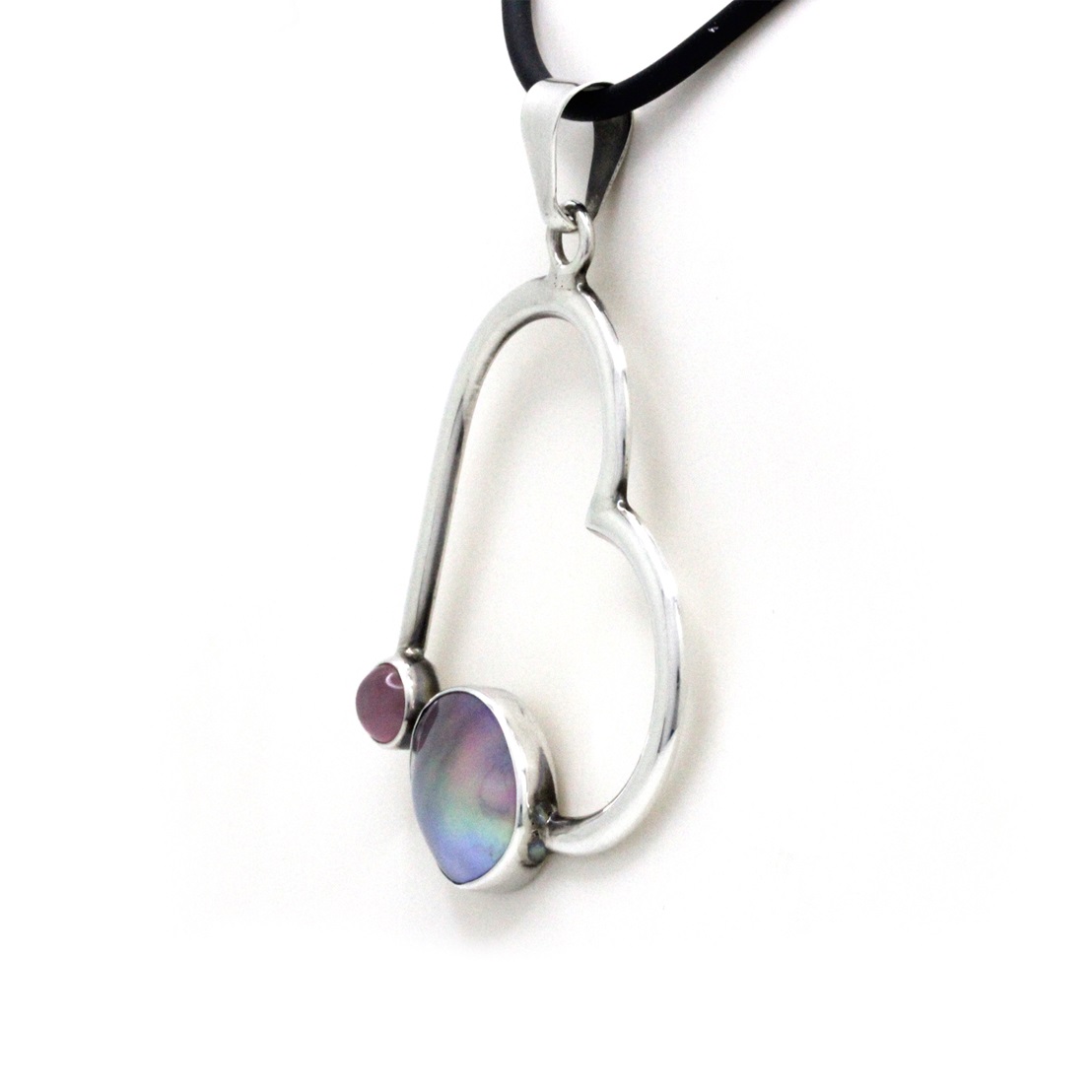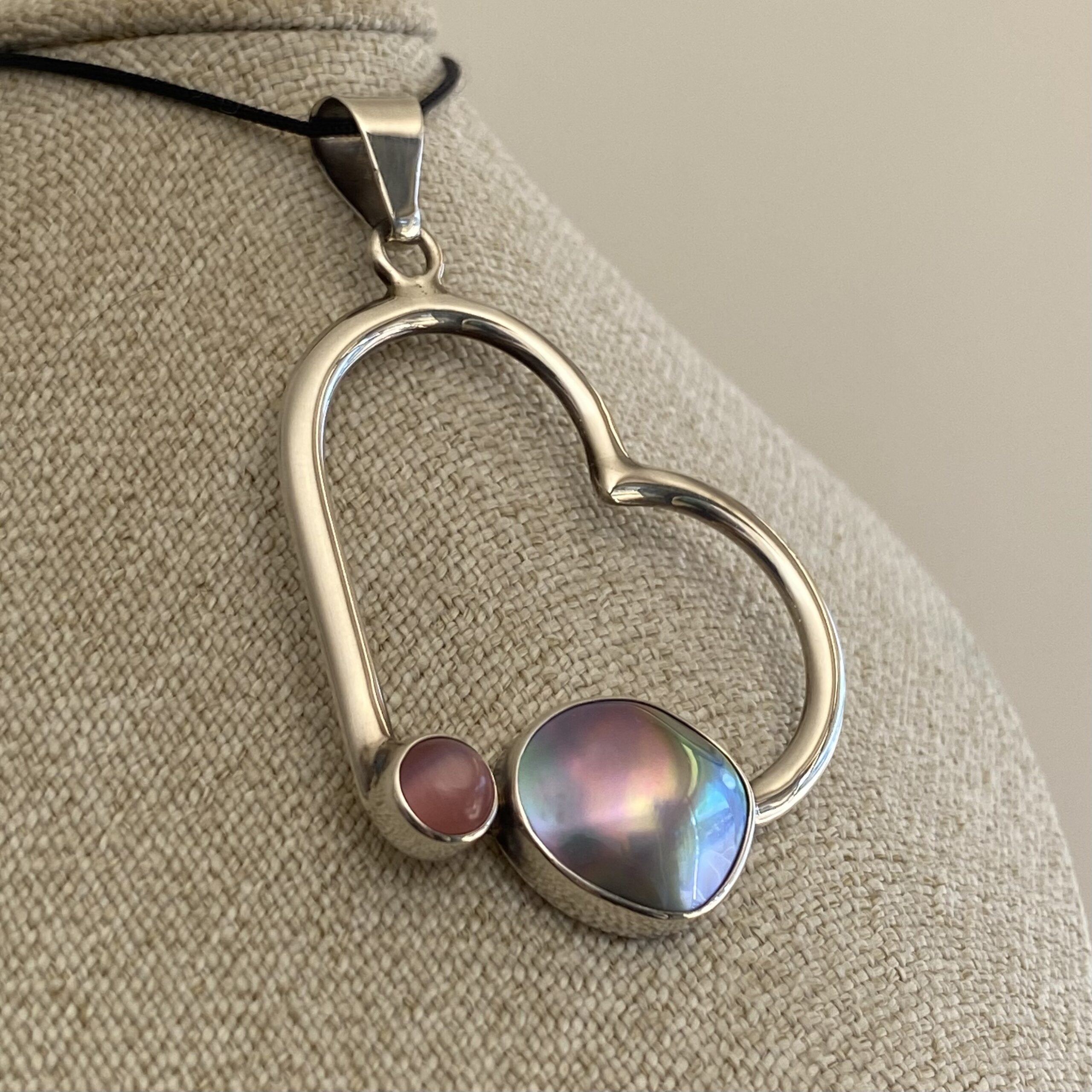 Les presentamos este bello dije en forma de “Corazón”, elaborado en fina Plata 0.925 por artesanos de Taxco. Esta especial pieza, cuenta con una extraordinaria Perla Mabe del Mar de Cortez de hermosas y variadas tonalidades iridiscentes. Adicional a ello, incluye una piedra muy utilizada por los creadores de la pieza, un “ojo de gato” rosa, que va perfecto con el diseño. Su tamaño, forma y color la hace una pieza llena de amor y valor sentimental, única e irrepetible. Un dije especial para la mujer que amas.